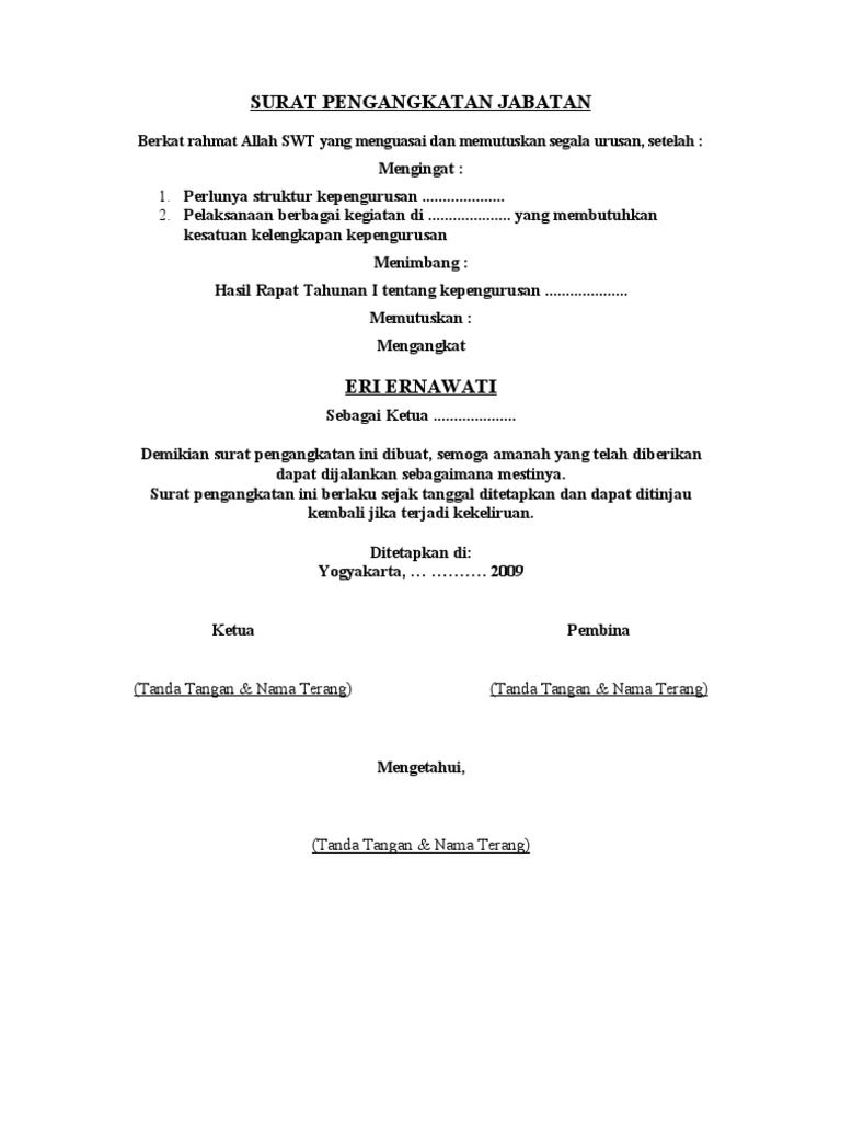 Contoh Surat Dinas Pengangkatan Jabatan Contoh Surat from www.gmim.or.id Contoh liran viii surat keputusan pengangkatan. Berdasarkan hasil evaluasi terhadap kelengkapan berkas administrasi, hasil test dan hasil wawancara kerja yang dilakukan oleh pt. Fotokopi sk pengangkatan dalam jabatan terakhir. Syarat syarat pengangkatan jabatan fungsional guru pertama kali : Sk pangkat terakhir satu rangkap. Keputusan bupati bantul nomor 588 tahun 2020. Salah satunya dengan sk dimana ini adalah bukti seseorang merupakan bagian dari perusahaan terlebih lagi sebagai bukti untuk meniti jenjang karier yang lebih tinggi lagi. 09072019 the assortment of images contoh surat pencabutan sk jabatan that are elected straight by the admin and with high resolution hd as well as facilitated to download images.